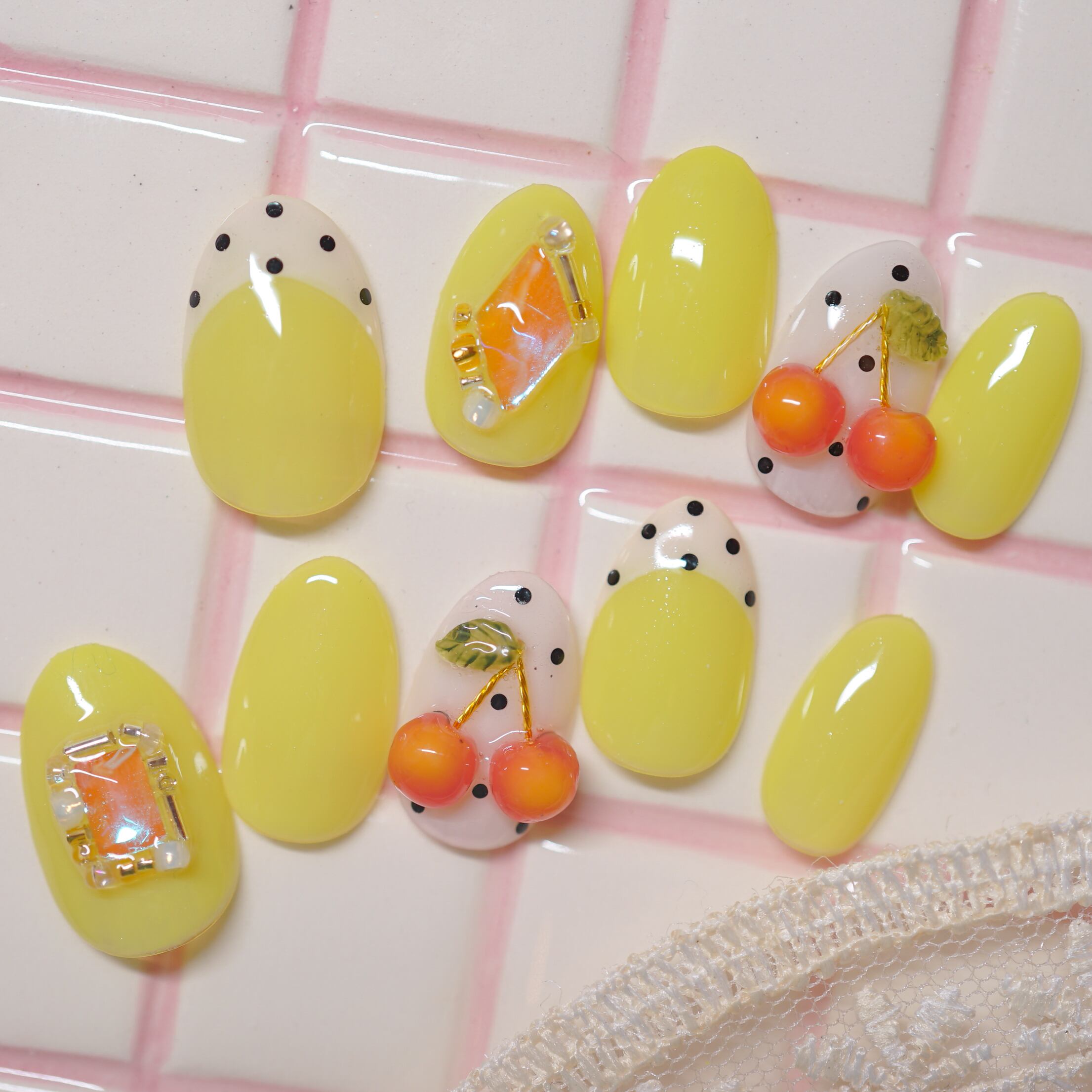 春夏にぴったりの爽やかなベースカラーとビーズとドット柄でフレンチガーリーなデザインに仕上げました。